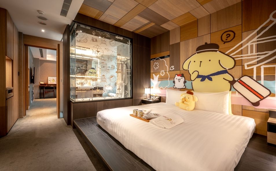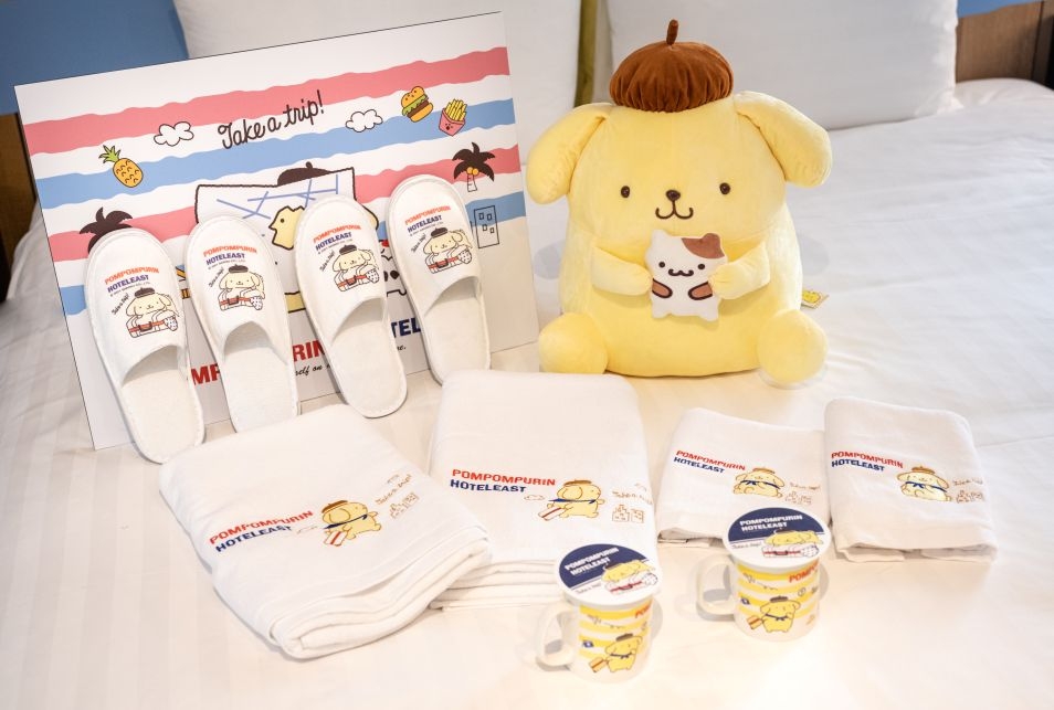 Hotels.com這次特別選在剛開幕一年多的台北東旅,一同打造升級版的Bellpug禮賓大使主題咖啡廳與主題房,從飯店大廳就可看到Bellpug的足跡,房間更設計兩種房型,包括「寵愛自己房(行政套房房型)」;「玩樂有禮房(經典雙人房行,一大床)」,從電梯門口到走廊在到房間都可以看見貼心的小設計,進到裡頭可以看到滿滿的巴哥造型枕頭經典紅色logo烙印在房間各處,此外,床上還可看到Bellpug的禮賓造型玩偶與眼罩、拖鞋等居家用品集結成的禮盒,要送給每個前來的旅客;此外,兩種房型也都有浴缸,讓你在放鬆泡澡的同時也能看到鏡面上貼著的Bellpug照片與印有腳印的毛巾等,讓你感受到滿滿狗狗的療癒氣息。