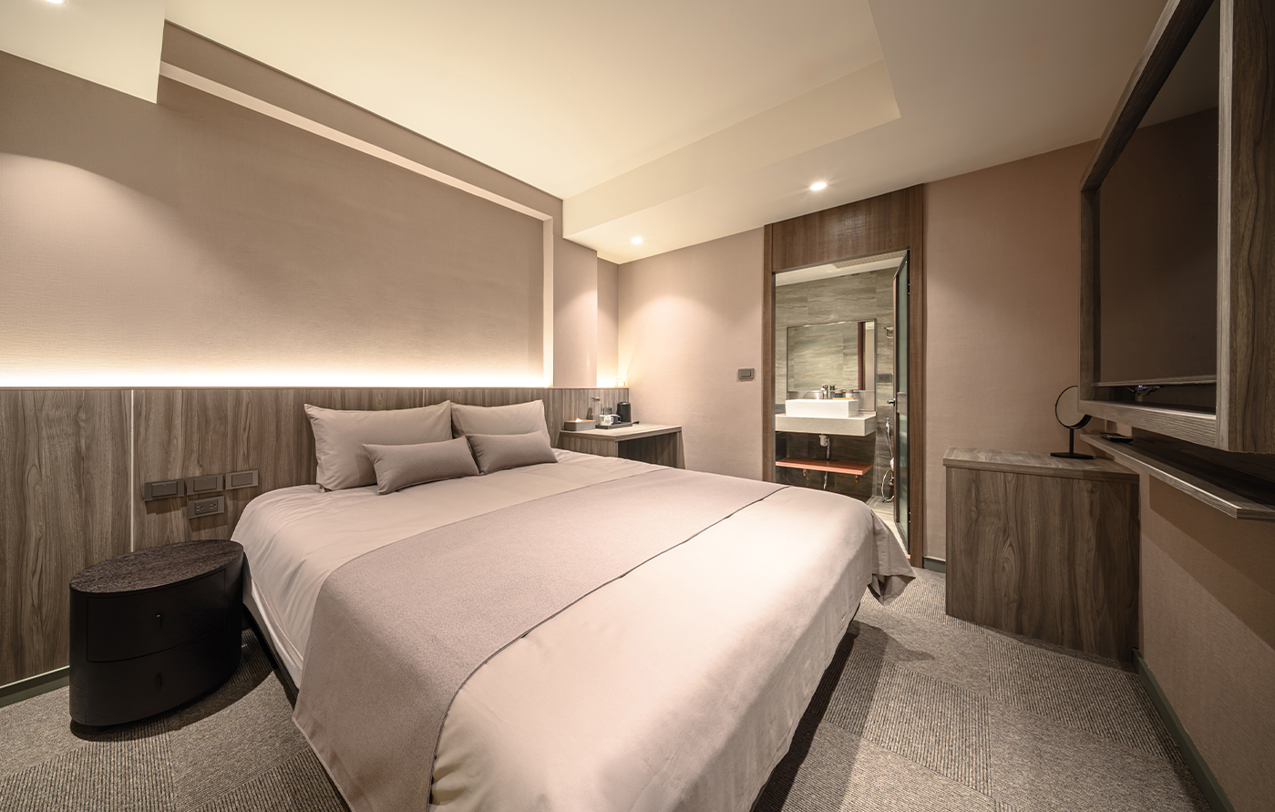 透過 APP 一鍵操控燈光、空調與窗簾,依照自己的節奏調整,讓客房即刻回應你的需求。