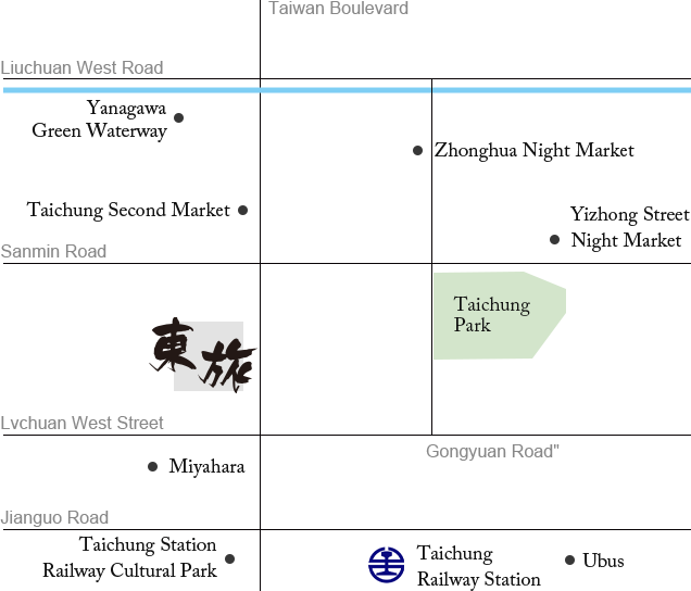 Hotel East is situated in the vibrant area of Taiwan Boulevard, adjacent to Miyahara, Green River Parkway, historical landmarks, cultural and creative hubs, and renowned food destinations, making it an ideal base for exploring Taichung.